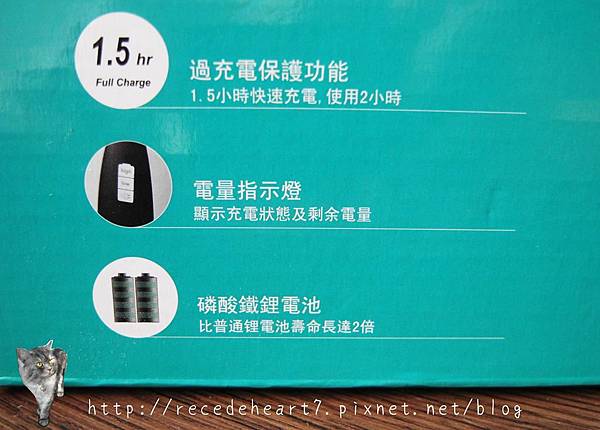 比較值得看的就是充電時間只要1.5小時,可以使用2小時(超節省時間的啊!)